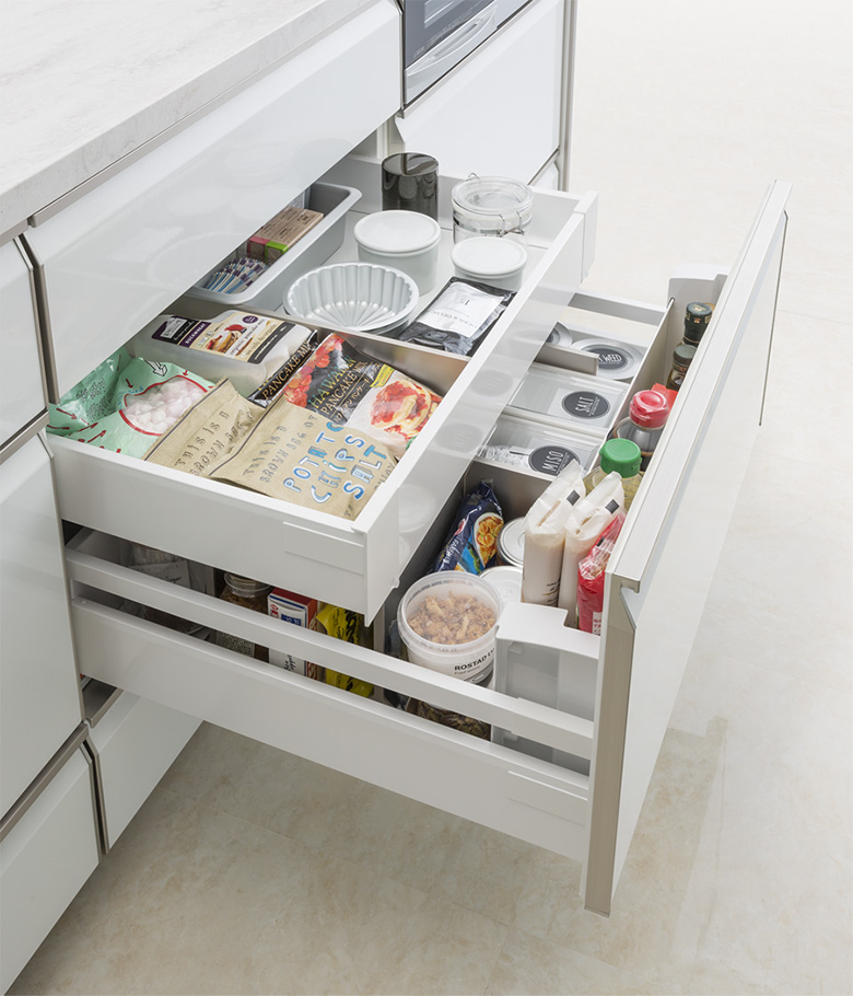 可充分收納的多層設計。直至抽屜的裡側和背面,最大限度地加以利用。