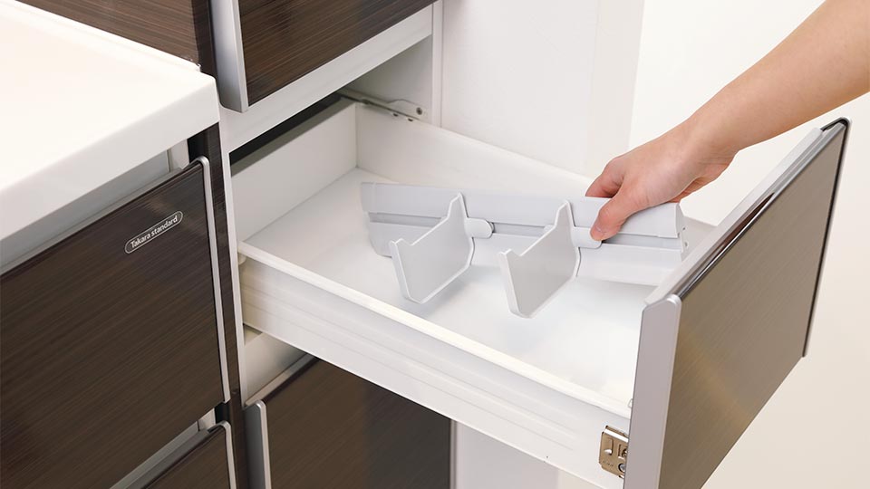 引出しの底がホーローなら、洗剤がこぼれても染み込まず、サッとキレイになります。