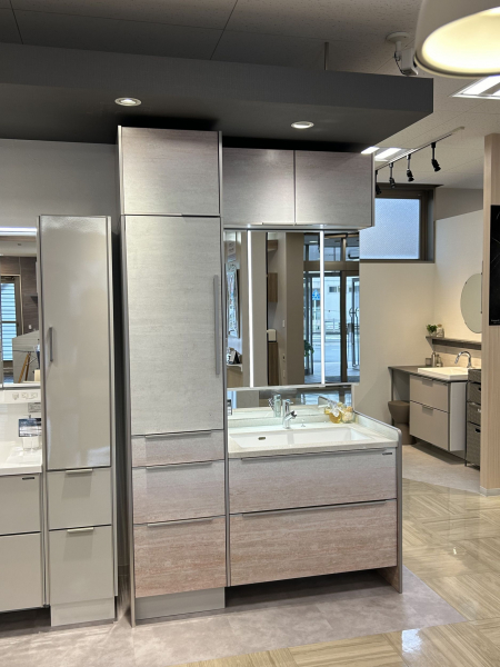 クオーツストーンカウンターの高級感漂う展示でワンランク上の洗面化粧台✨