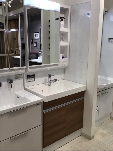 多様な組み合せをセレクトできる木製洗面化粧台。