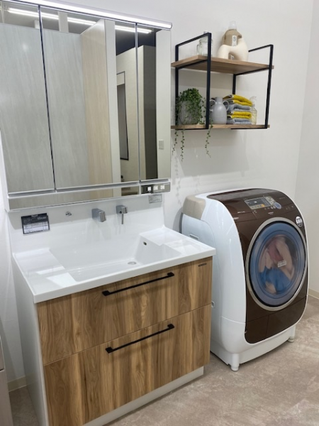 多様な組み合せをセレクトできる木製洗面化粧台。