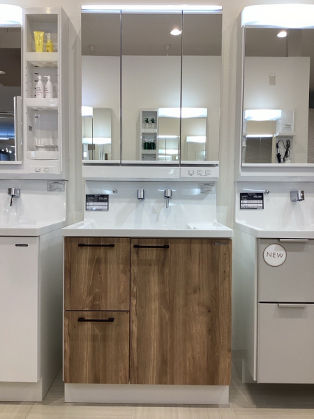 多様な組み合せをセレクトできる木製洗面化粧台。