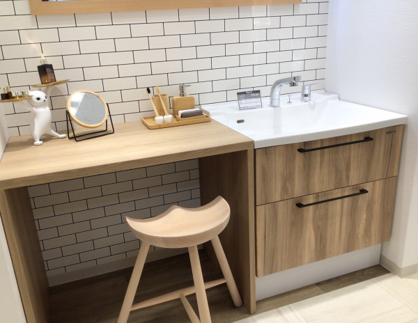 多様な組み合せをセレクトできる木製洗面化粧台。