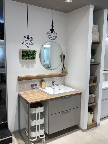 多様な組み合せをセレクトできる木製洗面化粧台。
