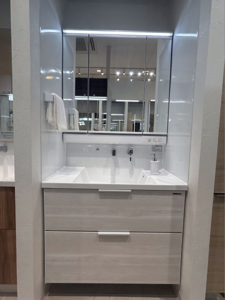 洗面台(洗面所) ファミーユ 間口90cm ホワイト(木目) SU2143の展示品