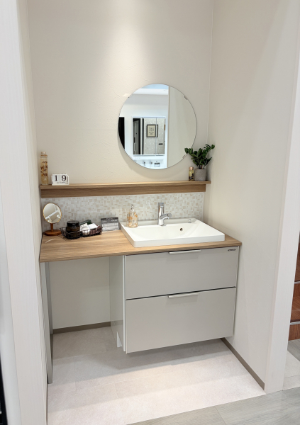 多様な組み合せをセレクトできる木製洗面化粧台。