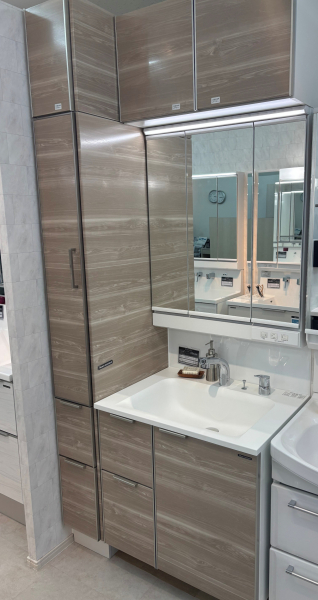 多様な組み合せをセレクトできる木製洗面化粧台。