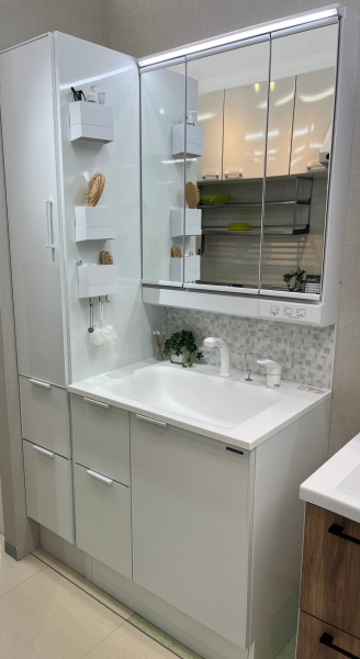 トールキャビネットをセットすればタオルや洗剤類もたくさん収納できます。