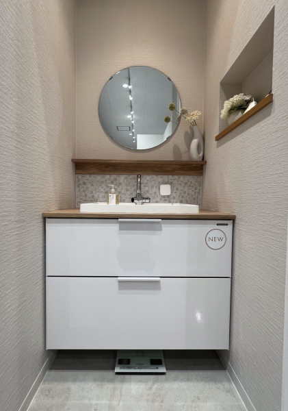 メラミンカウンターと造作風ベッセルボウルで自分らしいこだわりの洗面台に。