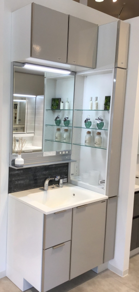 洗面台(洗面所) ファミーユ 間口75cm ライトグレー SU3674の展示品
