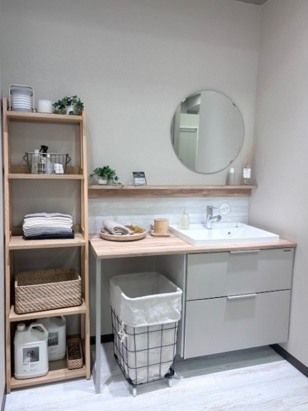 多様な組み合せをセレクトできる木製洗面化粧台。