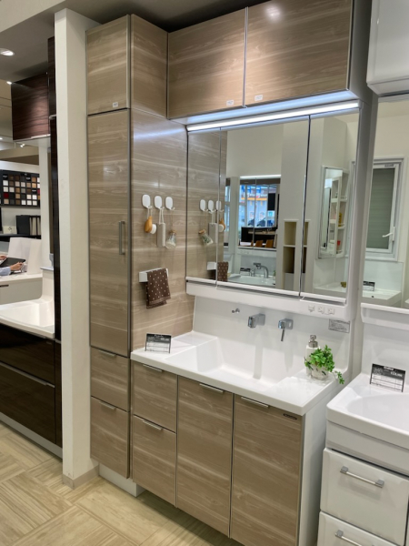 物をたくさん収納できるのですっきりとした洗面空間にしていただけます♪