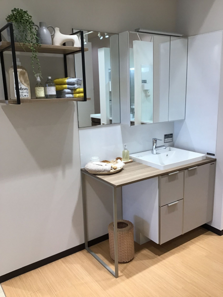 多様な組み合せをセレクトできる木製洗面化粧台。