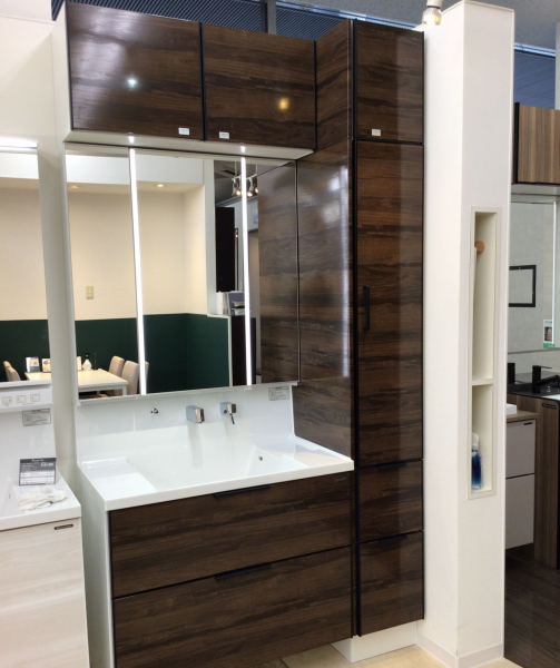 多様な組み合せをセレクトできる木製洗面化粧台。