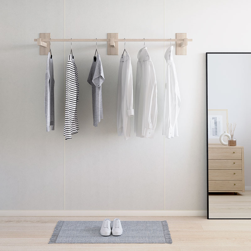 花粉などが付着しやすい上着類を掛けておく、コートスタンドを活用しましょう。フックを壁につけるだけでもOK!