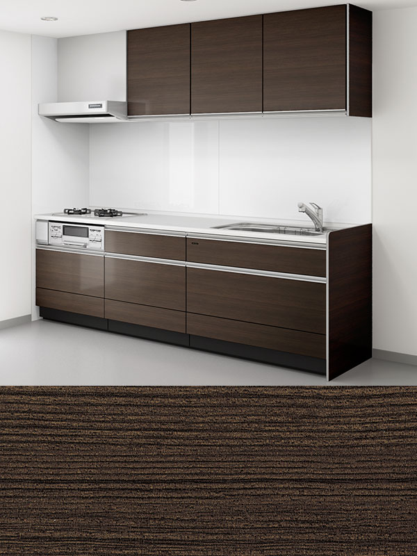 本物の木目を想わせる、最高級クラスの扉面材。高圧プレス製法から生まれるメラミン化粧板は抜群の耐久性を持ち、いつまでも美しい外観を保ちます。