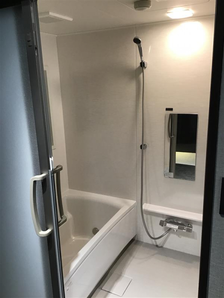 排水トラップが埋め込まれているマンションの浴室をリフォーム。
