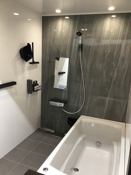 排水トラップが埋め込まれているマンションの浴室をリフォーム。