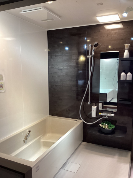 深い透明感と心地よい肌触りの鋳物ホーロー浴槽。浴室内も格調高い逸品で構成しています。