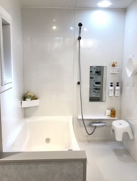 排水トラップが埋め込まれているマンションの浴室をリフォーム。