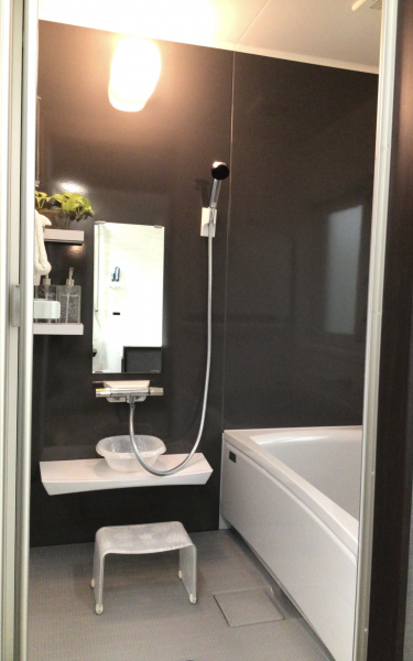 排水トラップが埋め込まれているマンションの浴室をリフォーム。