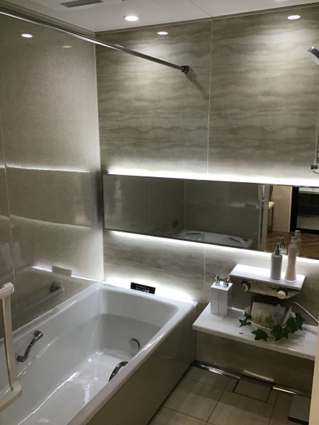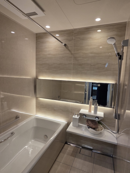 深い透明感と心地よい肌触りの鋳物ホーロー浴槽。浴室内も格調高い逸品で構成しています。