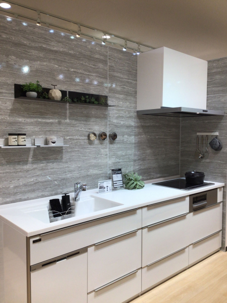 レミュー ホワイトの展示です!白く美しく輝くキッチンを一度ご覧ください!
