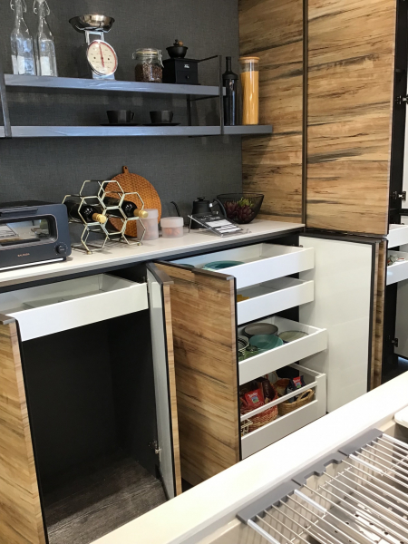 本物の木を感じさせる木目柄が新登場。美しく繊細な模様を堪能できるキッチンです。