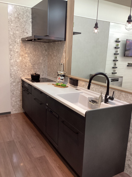 キッチン リフィット I型・ペニンシュラ型(対面式)レイアウト サンドブラック SK1583の展示品