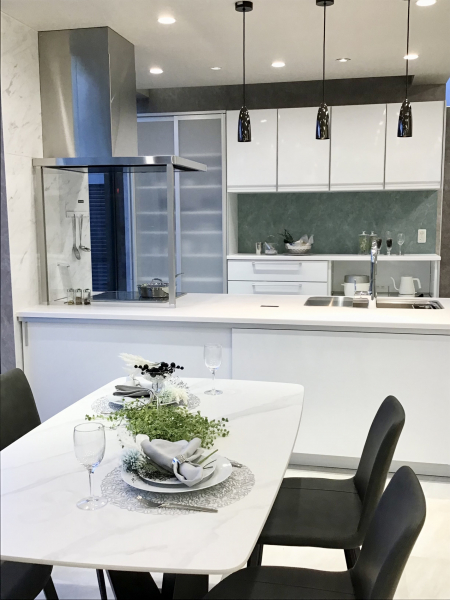 キッチン トレーシア I型・ペニンシュラ型(対面式)レイアウト ホワイト SK3824の展示品