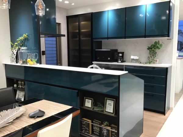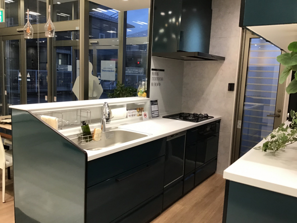 キッチン トレーシア I型・ペニンシュラ型(対面式)レイアウト ブルーグリーン SK671の展示品