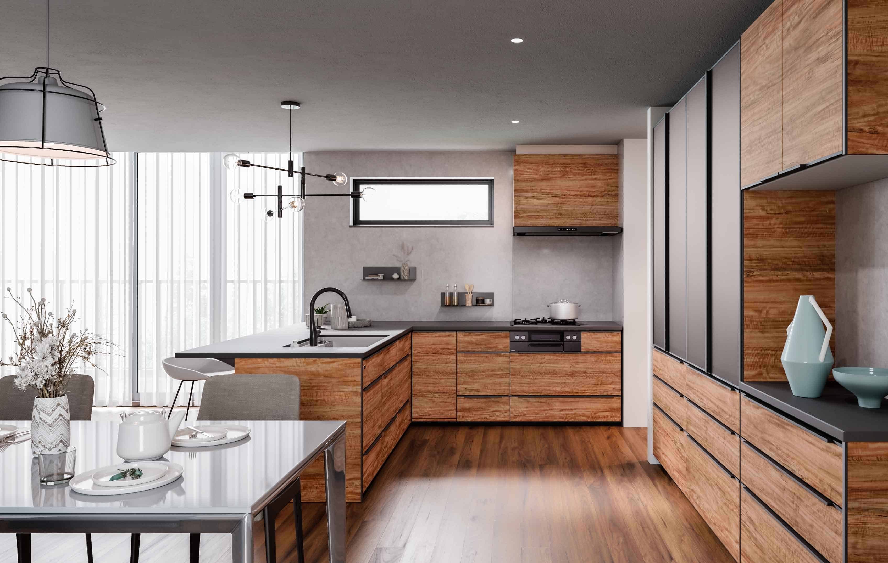 シンク・コンロ位置やキャビネットの高い自由度など、