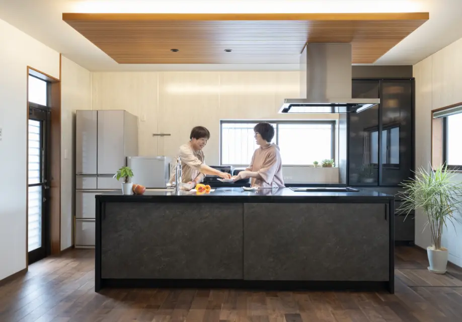 どうせリフォームするなら、この機会にずっと憧れていたアイランドキッチンにしようと考えました。三世代で一緒に使える広々とした空間なら、将来もし車椅子になっても動きやすく、大好きな料理を続けられるはず。そんな思いも込めました。