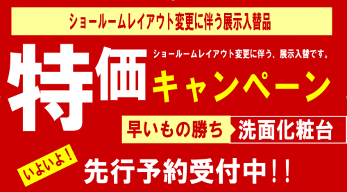 ◆洗面化粧台・トイレ展示売却品のお知らせ◆