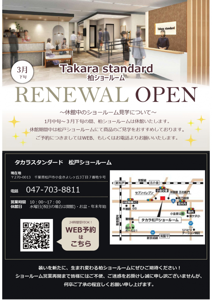 柏ショールーム全面改装に伴う一時休館のお知らせ