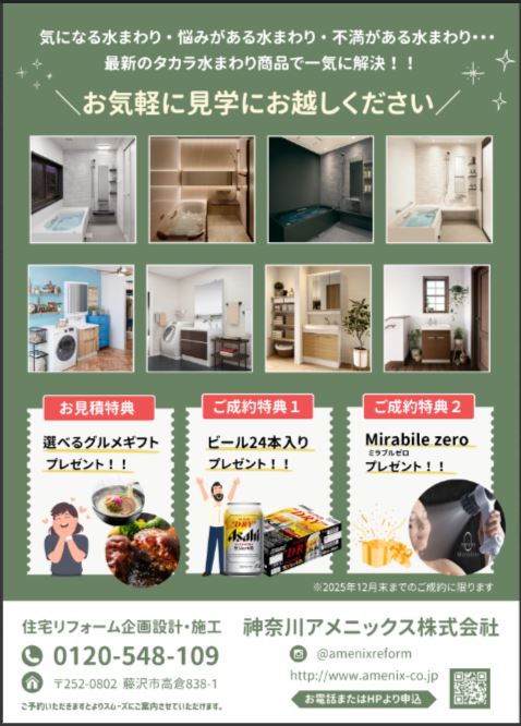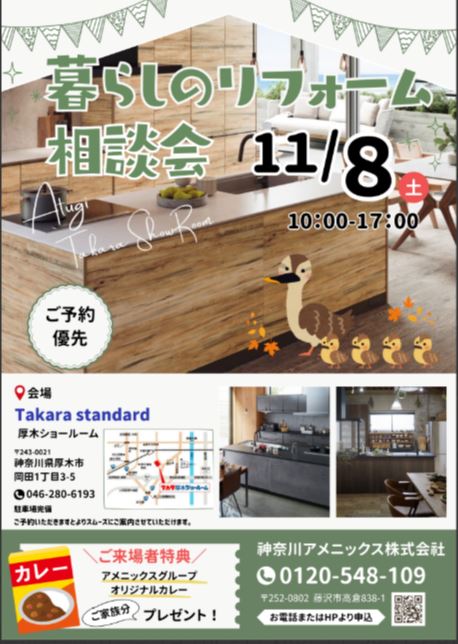 2025年11月8日(土)に神奈川アメニックス様のリフォーム相談会を開催します。