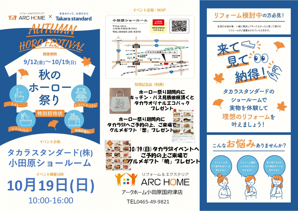 アークホーム小田原国府津店×タカラスタンダード小田原 合同開催 秋のホーロー祭り開催します。