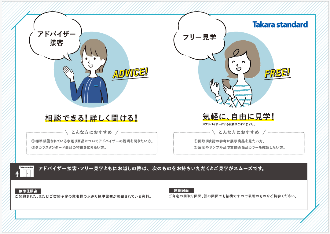 当ショールームでは、ご予約の際に2つの見学スタイルがお選び頂けます。
