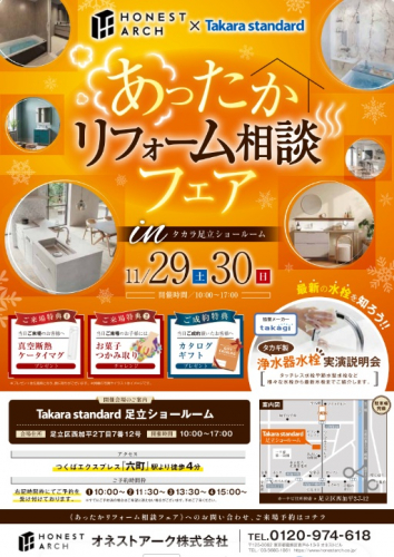 11/29(土)、11/30(日)リフォーム相談フェアを開催いたします。