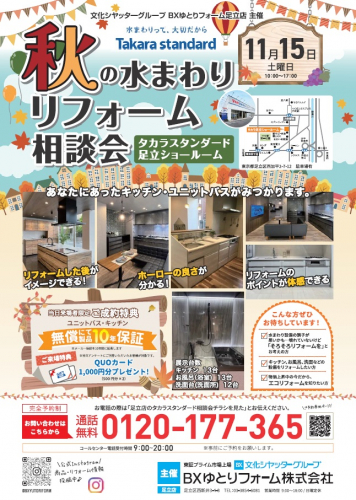 11/15(土)水まわりリフォーム相談会を開催いたします