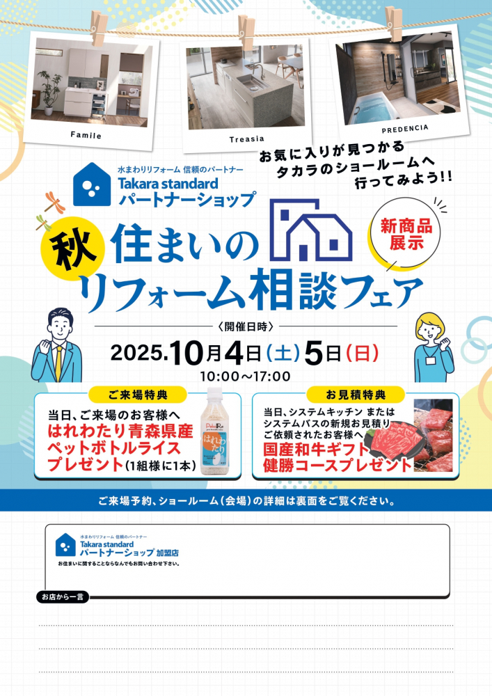 タカラスタンダ―ド パートナーショップ 住まいのリフォーム相談フェア開催!