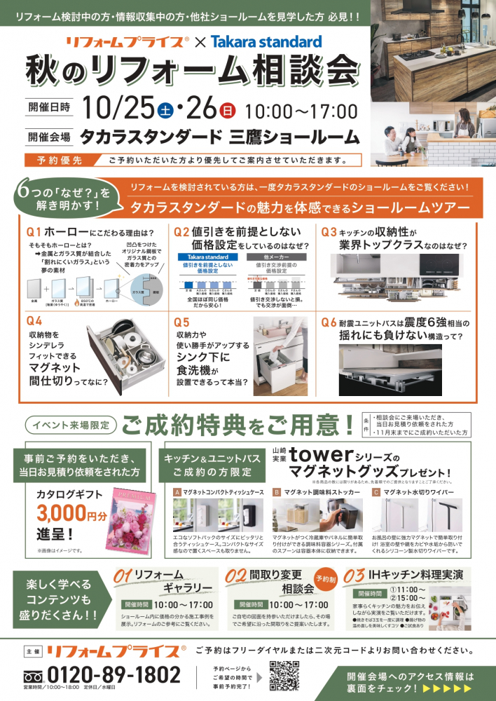 リフォームプライス様とのコラボイベント「秋のリフォーム相談会」を開催いたします!